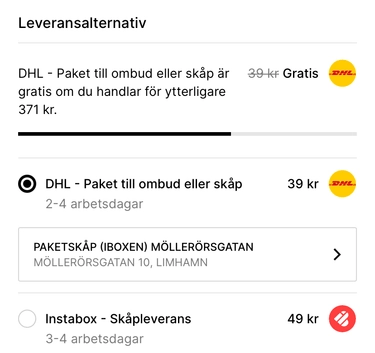 Närmsta DHL-ombud eller annat närliggande paketskåp.Vad händer om jag skickar ett paket med DHL som är för stort för ett paketskåp?
